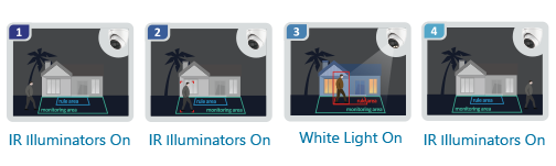 Η κορυφαία στον κλάδο τεχνολογία Smart Dual Illuminators μπορεί να εναλλάσσεται με ευελιξία μεταξύ της λειτουργίας IR και της λειτουργίας λευκού φωτός. Όταν είναι ενεργοποιημένη η Λειτουργία Έξυπνου Φωτισμού (προεπιλεγμένη λειτουργία), το συμπληρωματικό λευκό φως θα ανάψει μόνο όταν ο στόχος εντοπιστεί από τη λειτουργία SMD Plus/Περιμετρικής Προστασίας του XVR με δυνατότητα AI. Μπορεί να βοηθήσει σημαντικά στη μείωση της φωτορύπανσης κατά τη διάρκεια της νύχτας. Μαζί με άλλες λειτουργίες, συμπεριλαμβανομένης της λειτουργίας υπερύθρων και της λειτουργίας λευκού φωτός, η έξυπνη τεχνολογία διπλού φωτισμού μπορεί να καλύψει διάφορες απαιτήσεις σκηνής των πελατών.