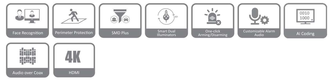 - Στα 2 πρώτα κανάλια δίνει την δυνατότητα περιμετρικής προστασίας (10 IVS κανόνες κάθε κανάλι, όπως tripwire και intrusion) ή 1 κανάλι περιμετρική προστασία και 8 κανάλια SMD+.